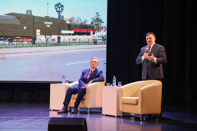 На патриотическом уроке «Разговоры о важном» Андрей Артюхов рассказал ученикам ишимских школ о памятниках, созданных по проекту «Оружие Победы».