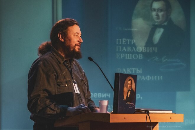 Геннадий Крамор презентовал книгу Татьяны Павловны Савченковой "Петр Павлович Ершов. Факты биографии", изданную к 210-летию писателя, а также другие новые книги музея. Константин Иванов рассказал об экспозиции, посвященной ишимским дивизиям, созданной им в музее пединститута.