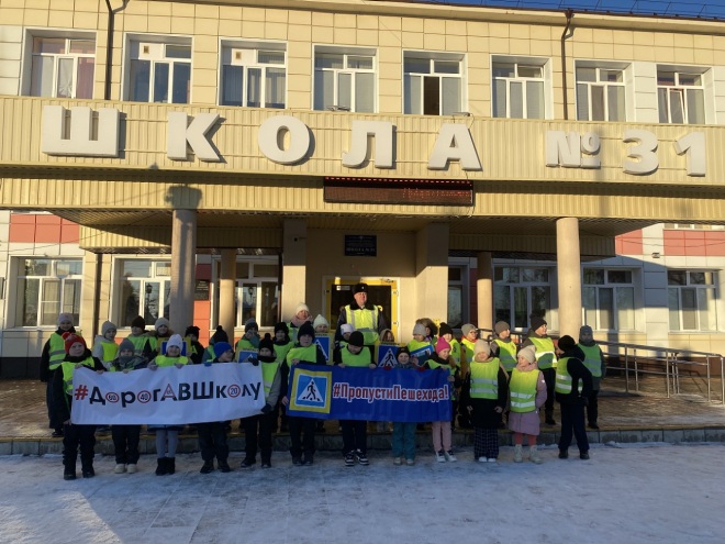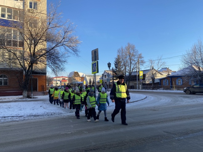 В рамках профилактического мероприятия «Безопасный путь в школу» сотрудники Госавтоинспекции провели акцию «Шагающий автобус» для учеников ишимской СОШ № 31.