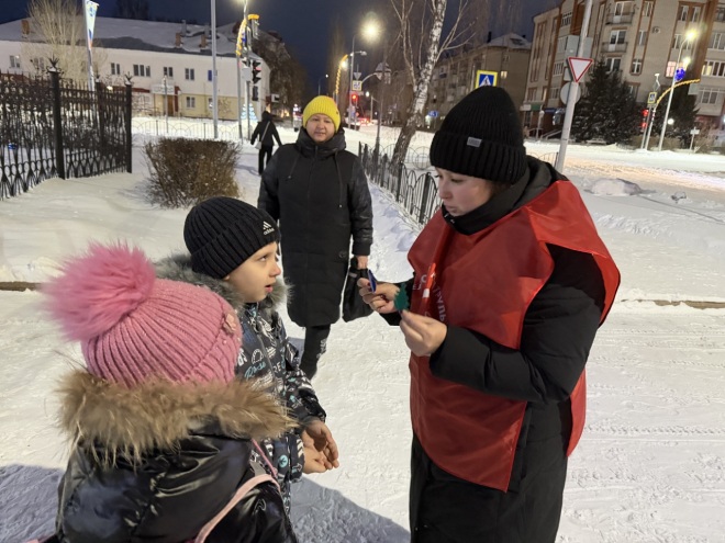 Сотрудники Госавтоинспекции и родительский патруль провели мониторинг использования световозвращающих элементов среди учащихся ишимских школ № 5 и № 31.