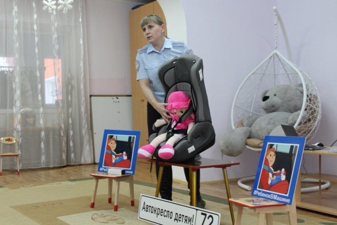 Мероприятие «Детское кресло» провели сотрудники Госавтоинспекции в детском саду № 10 г. Ишима, чтобы напомнить родителям о безопасности детей-пассажиров.
