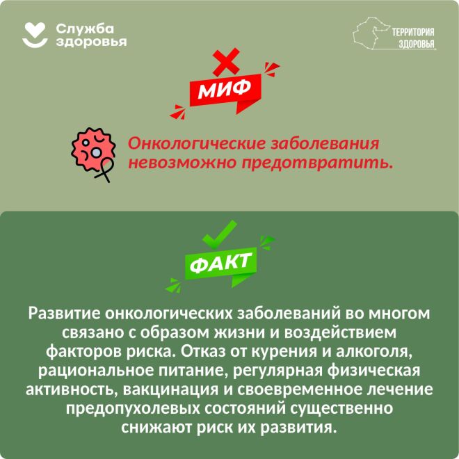В карточках подготовили для вас мифы и факты об онкологии↓