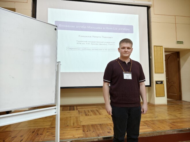 В секции "Алгебра и дискретная математика" он выступил с докладом на тему "Вложение алгебр Мальцева в Hom-Lie алгебры". В своей работе Никита установил связи между двумя классическими алгебраическими объектами, которые представляют собой альтернативные числовые системы.