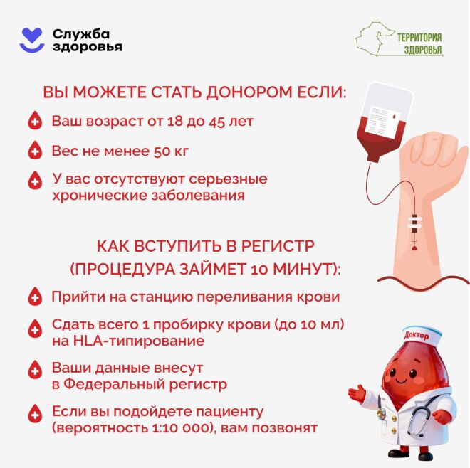 Стать донором костного мозга не страшно (это не "игла в кость"), а стать донором крови — привычно и безопасно.