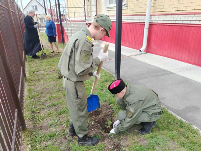 В этот же день на территории школьного двора была заложена Аллея памяти, посвященная выпускникам, погибшим в зоне проведения специальной военной операции. Посадочный материал – молодые елочки – подарила Марина Сергеевна Насонова. В посадке приняли участие почетные гости и школьники.