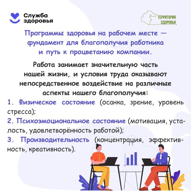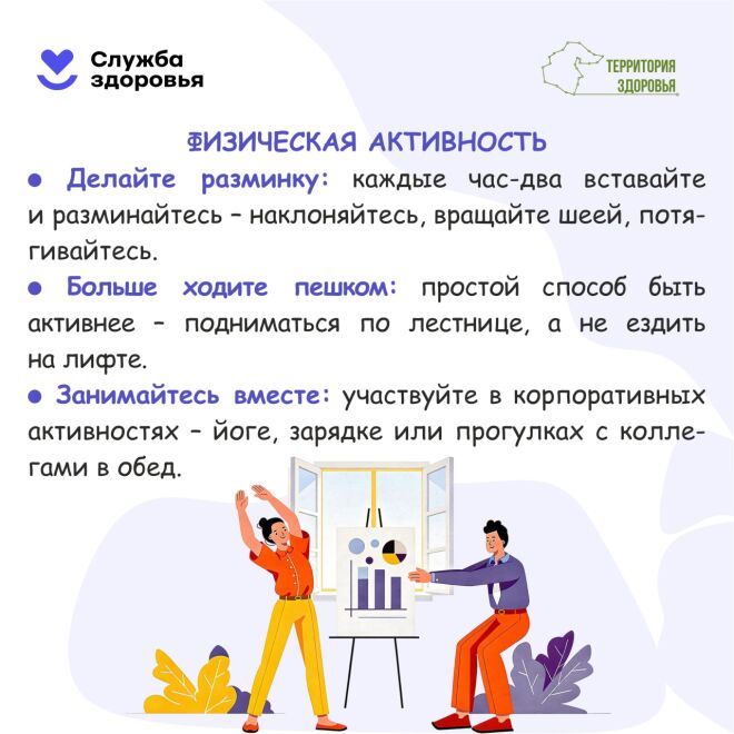 Безопасная и комфортная среда повышает продуктивность и продлевает карьерное долголетие. Внедряйте полезные привычки прямо на работе — это инвестиция в себя.